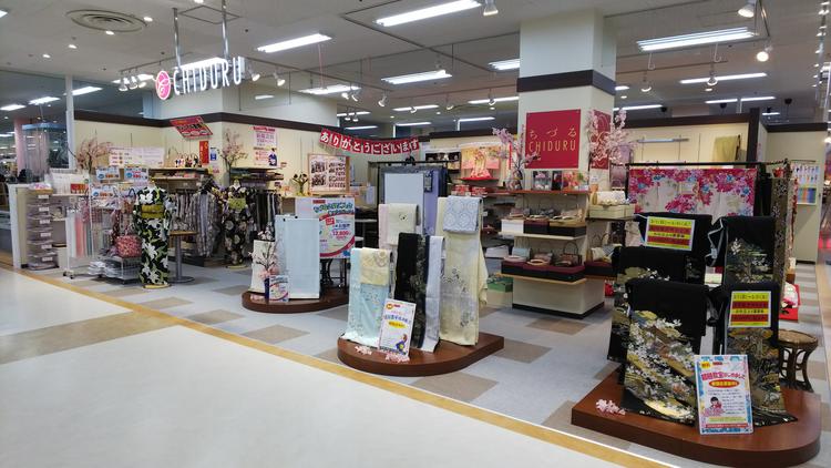 「ちづる」は、西日本を中心に、14店舗を展開しております。グループでは、104店舗を展開しており、西日本一となっております。「お客様の満足のために」をキーワードに「きもの」を中心に営業しております。