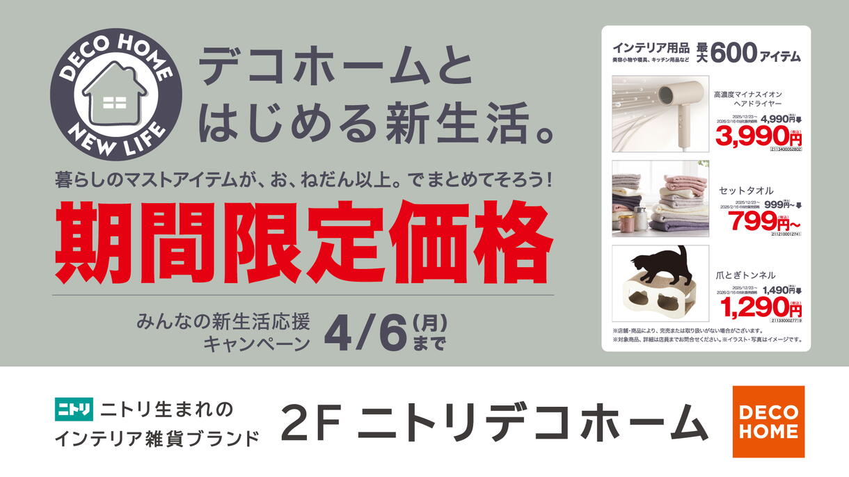 今回は、ニトリ・デコホームで開催中の【新生活応援値下げ】のお知らせです♪