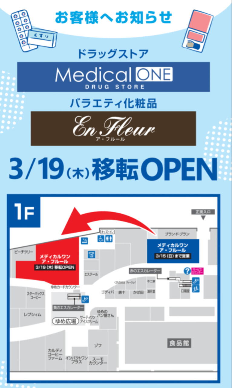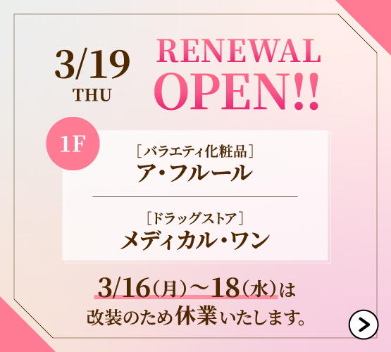 お客様へのお知らせ 3/19(木)ドラックストアとア・フルール リニューアルオープン