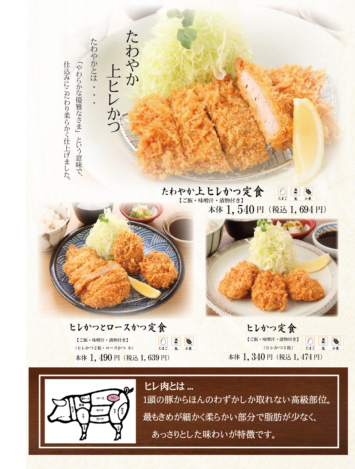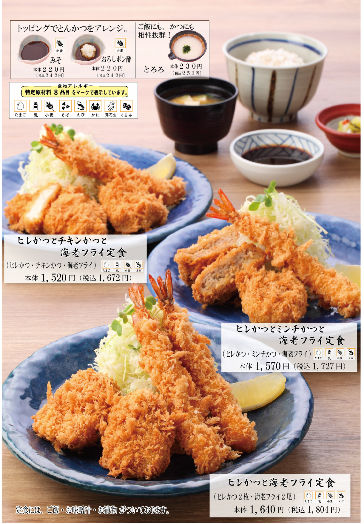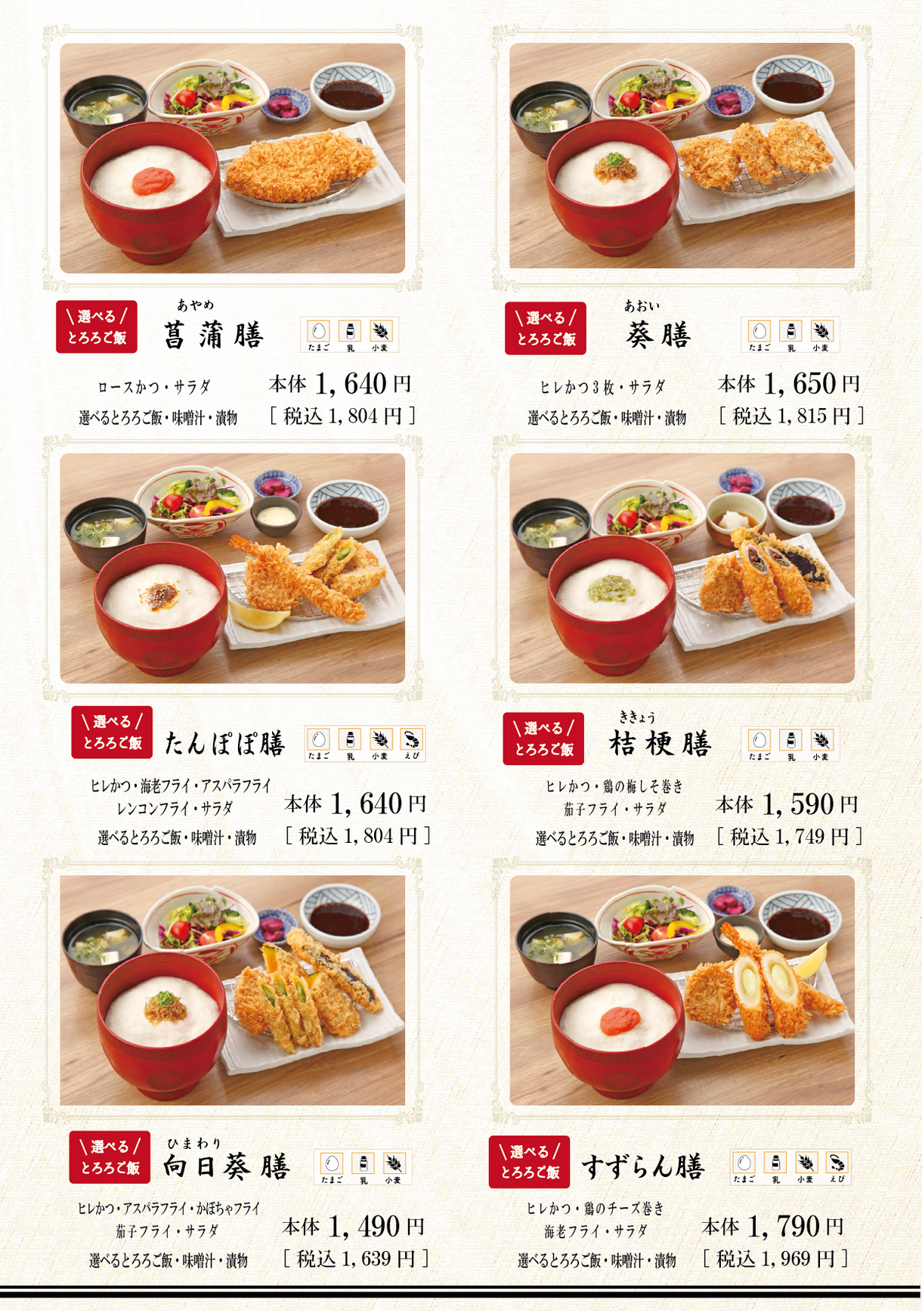 厳選した豚肉を使用したサクサクのとんかつと、栄養豊かなとろろを楽しめる和食膳のお店です。ロースかつ膳やヒレかつ膳、とろろ膳、海老フライ膳など多彩な定食をご用意しています。揚げたてのとんかつに、とろろを合わせた滋味深い味わいが魅力です。ごはん・キャベツはおかわり自由。お買い物の合間のお食事やご家族でのお食事にも、満足感あるひとときをお楽しみいただけます。
