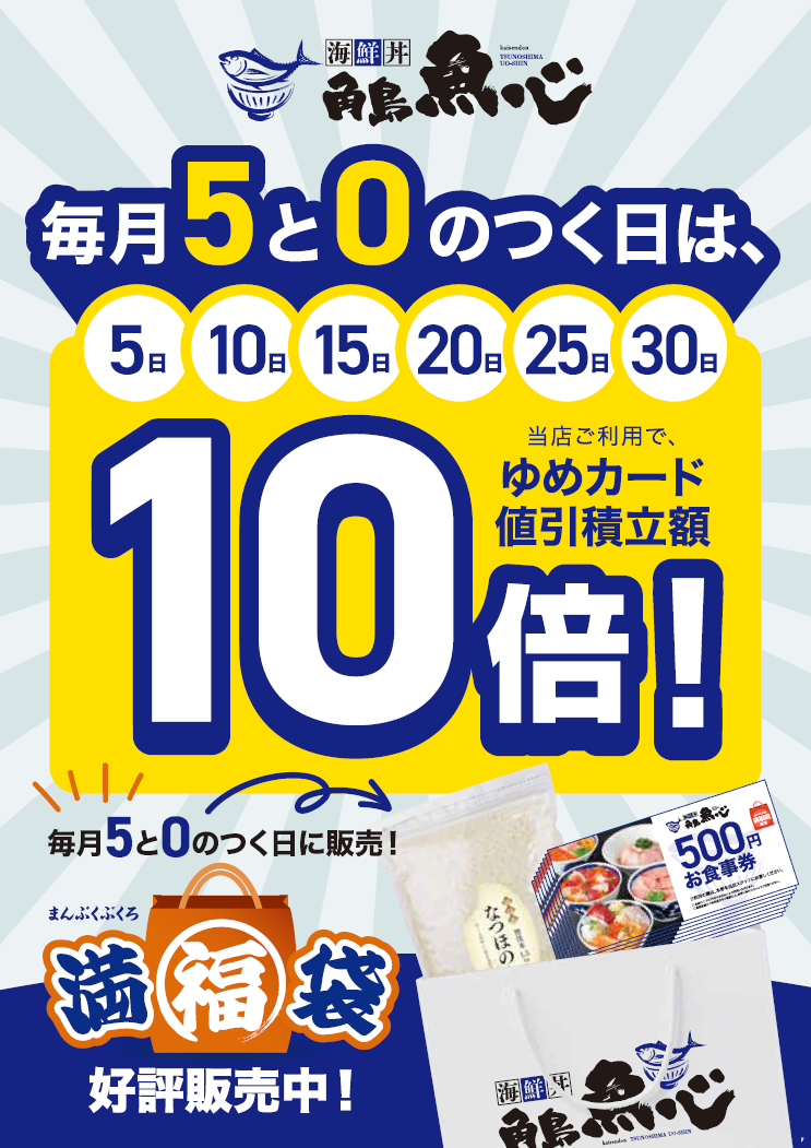 ゆめシティ ショップニュース 毎月5と0のつく日は値引積立額10倍!