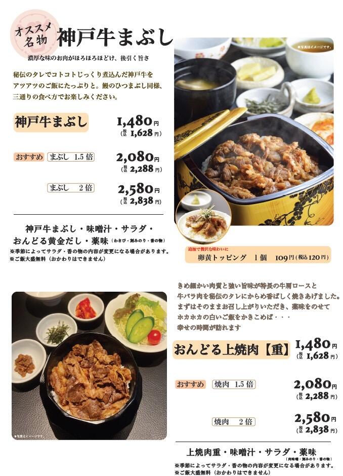 ※神戸牛まぶしには『卵黄トッピング』1ケ税込120円が選べるようになりました。