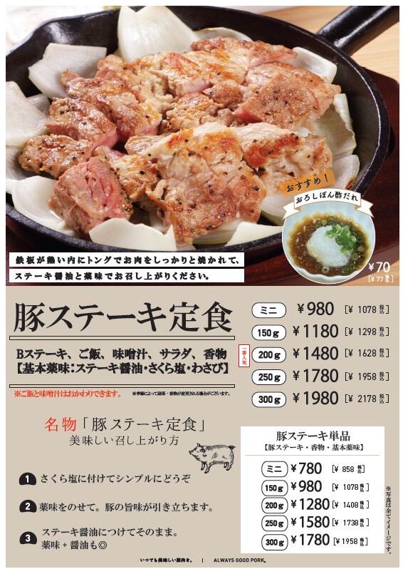 オープン当初から変わらず愛され続けている大人気の豚ステーキ定食^^