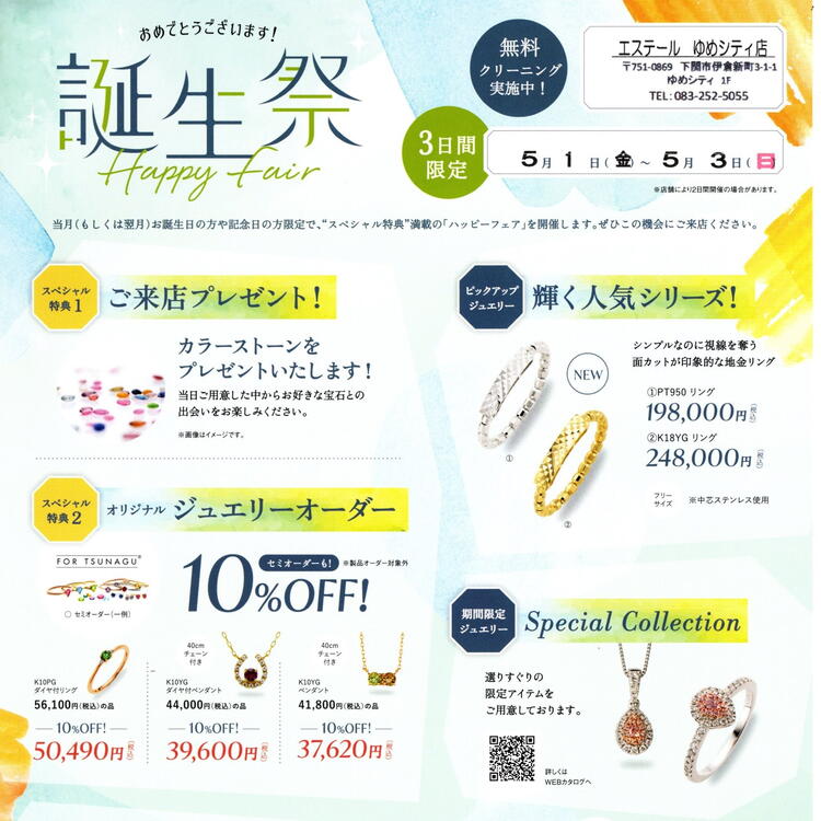 5/1(金)~5/3(日)の3日間限定でジュエリーイベントを開催いたします(*''▽'')