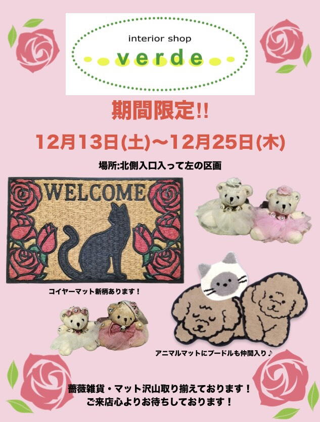 バラ雑貨のお店ベルデが期間限定でオープンいたします。