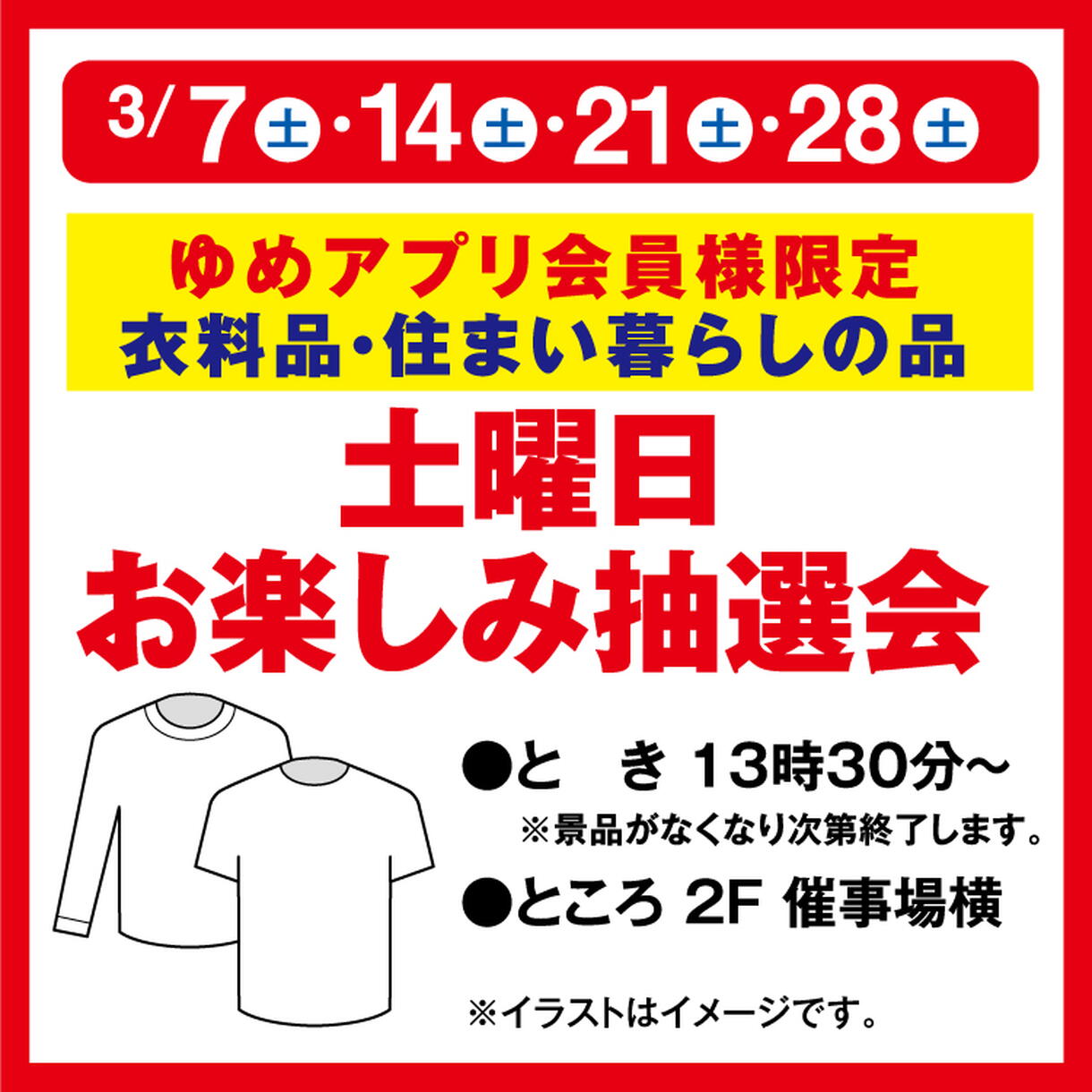 ゆめアプリ会員様限定 衣料品・住まい暮らしの品 土曜日お楽しみ抽選会