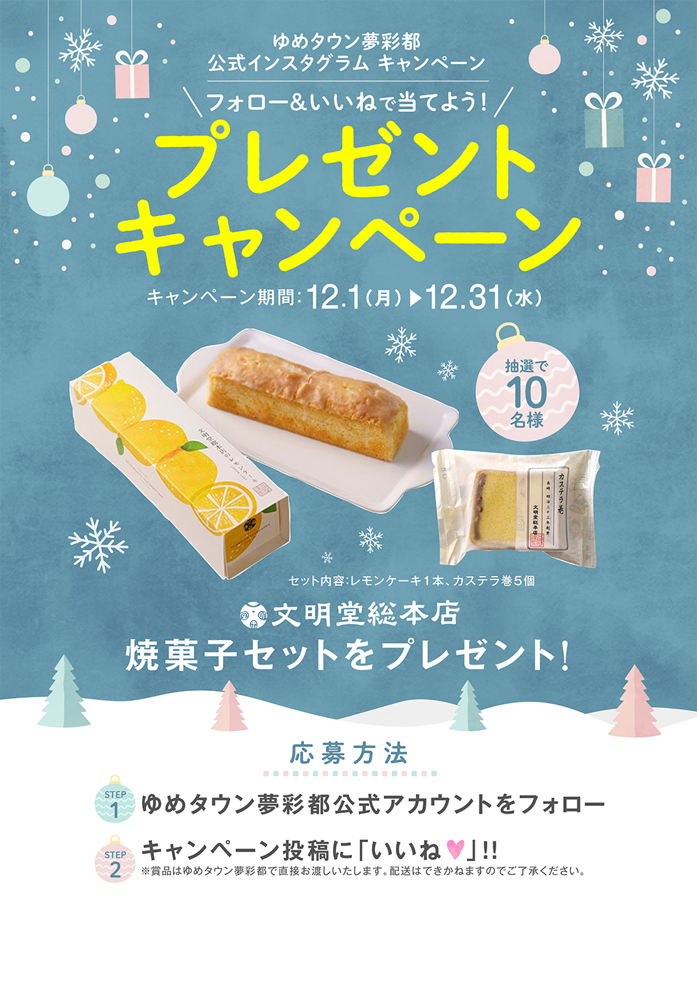 厳正なる抽選の上、キャンペーン終了後当選者様のみ ゆめタウン夢彩都公式アカウントからDMにてご案内させていただきます。