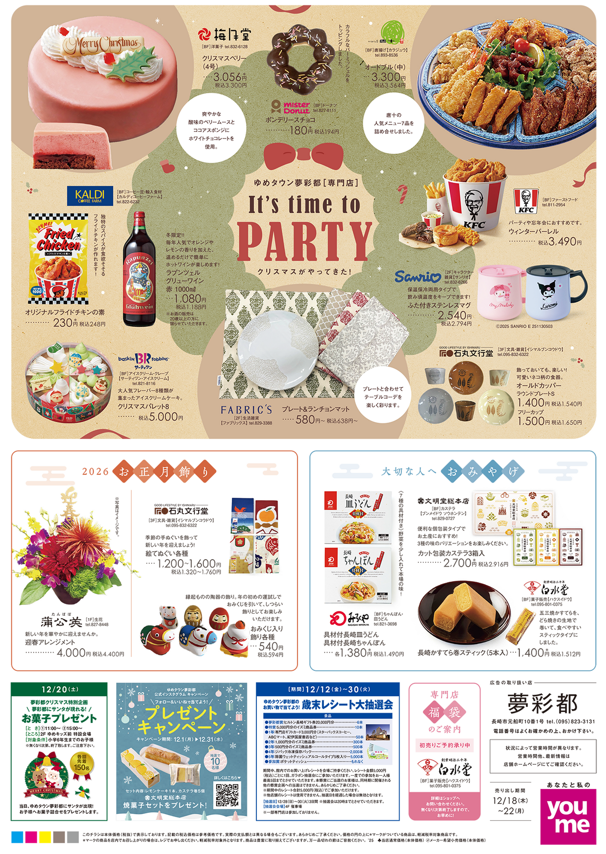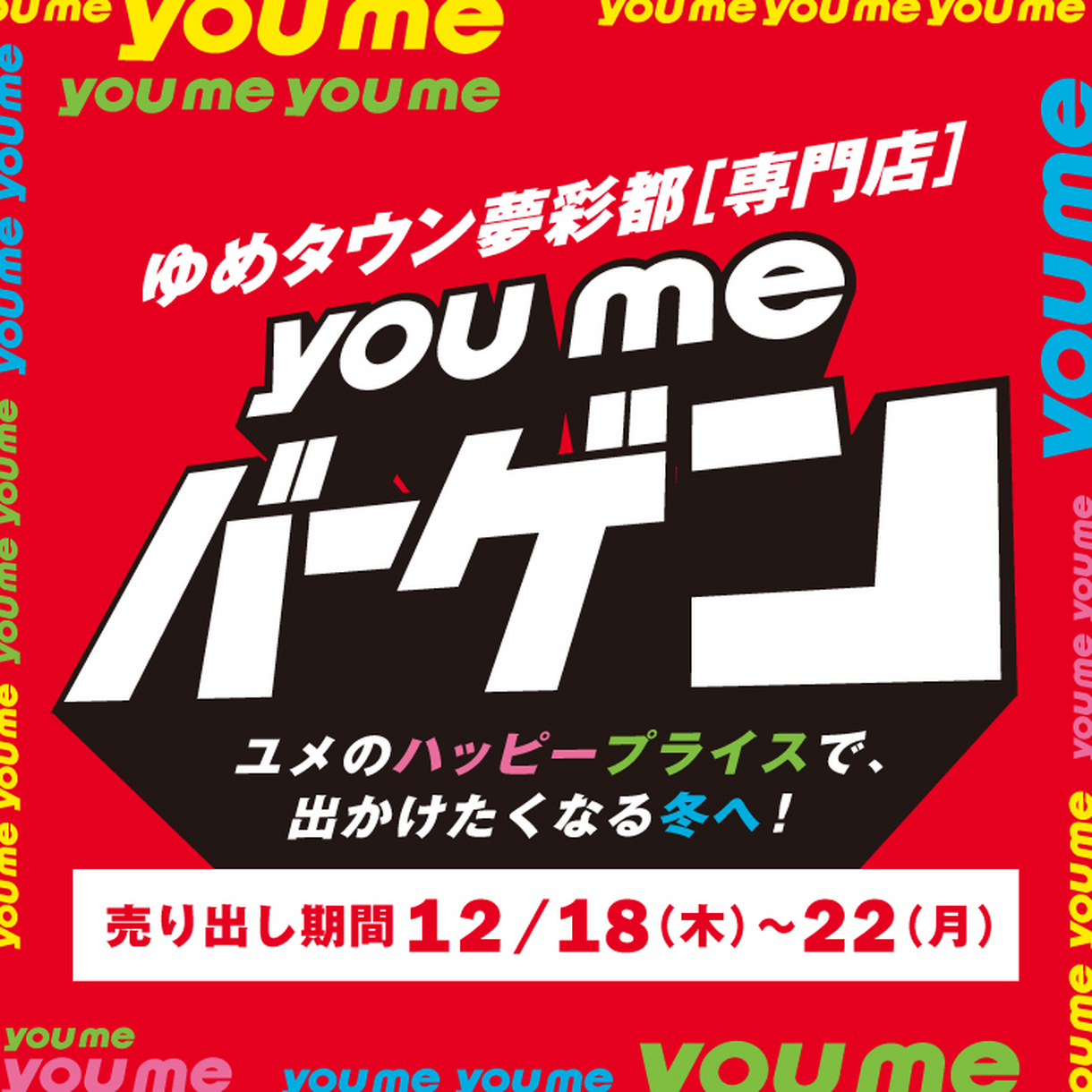 ゆめタウン夢彩都 イベント/キャンペーン 12/18(木)~22(月) ゆめタウン夢彩都【専門店】 youmeバーゲン