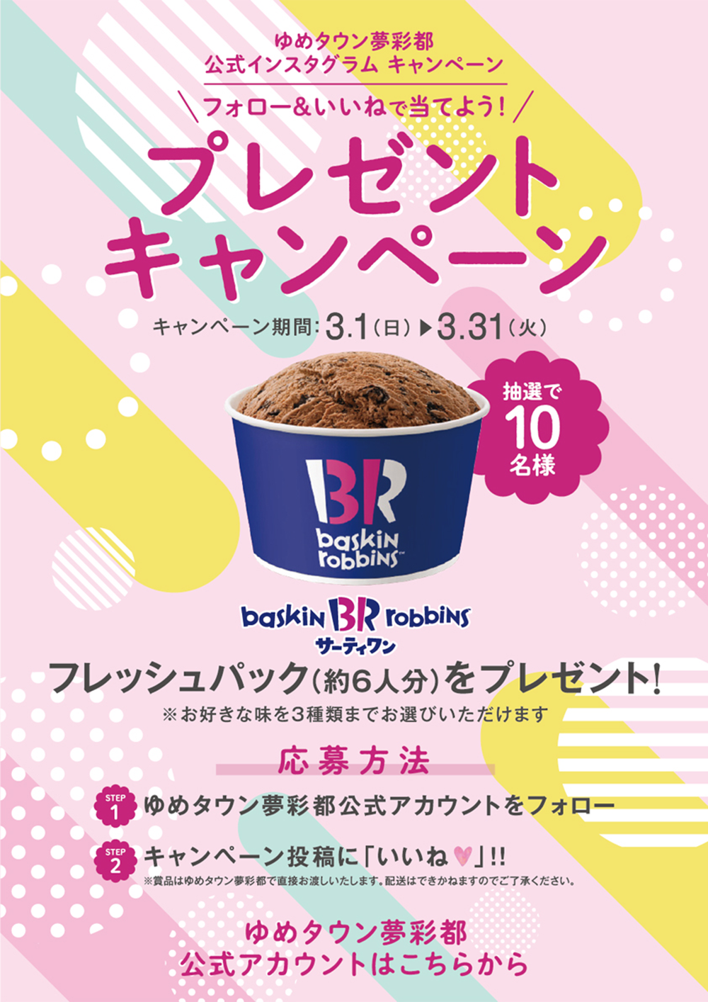 3/31(火)まで!ゆめタウン夢彩都公式インスタグラム プレゼントキャンペーン