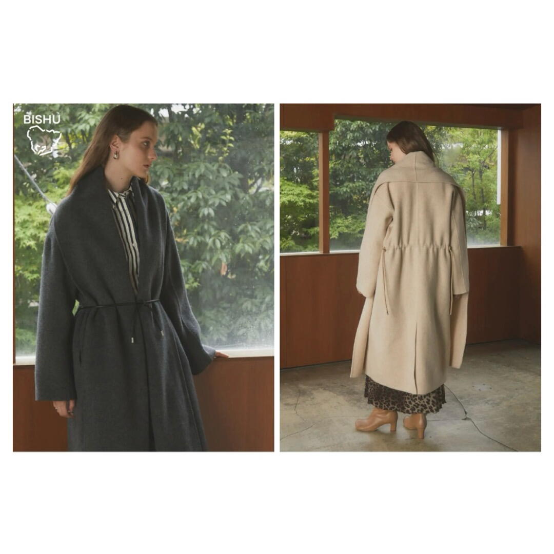 縫い目の始末を手縫いで仕上げている為、ハンドメイド仕様で縫い目も柔らかく、素材の良さを生かした優しい着心地が特徴のガウンコート。