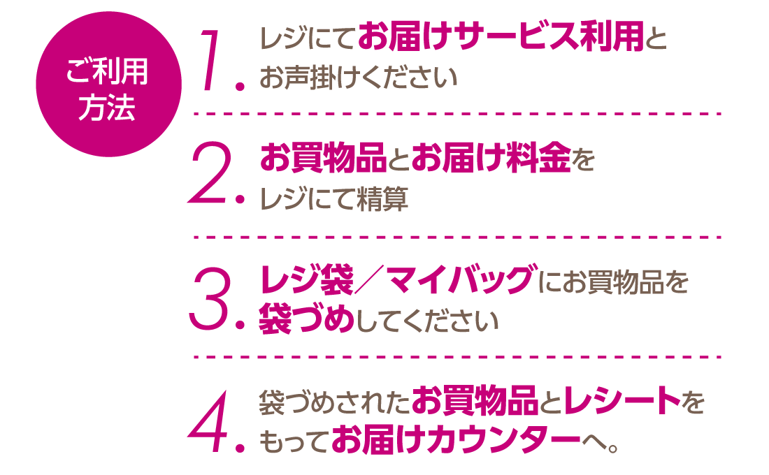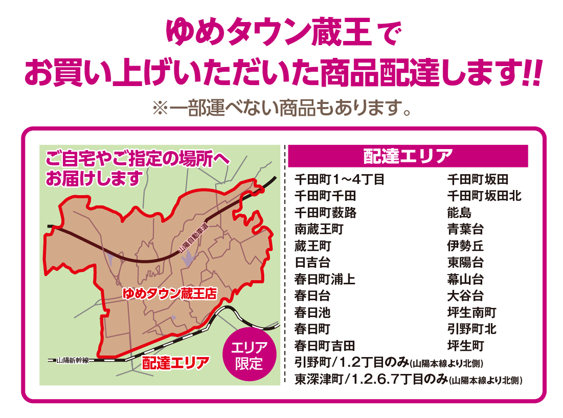 お買い上げいただいた商品 ご自宅やご指定の場所へ 配達します!